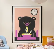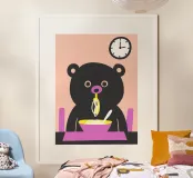 Per gli amanti del cibo e degli animali, l'illustrazione "Bear Eats Noodles" è la scelta perfetta! Questo disegno raffigura un simpatico ed espressivo orso che mangia una ciotola di noodles.