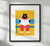 Calming Bear Illustration! This unique design features a bear engrossed in a book, creating a peaceful and comfortable atmosphere.