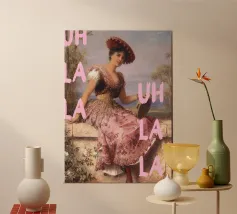 Celebrate il vostro legame indissolubile con "My Best Friend and I Are Better Than You", una spiritosa stampa pop art che unisce l'eleganza classica a una moderna e giocosa dichiarazione di amicizia. Questa accattivante opera d'arte raffigura due serene figure storiche, elegantemente posate su un lussuoso divano, apparentemente impegnate in un libro. Il testo in grassetto, di colore rosa caldo, "IL MIO MIGLIOR AMICO ED IO SONO MEGLIO DI TE" si sovrappone all'immagine, trasformando la scena senza tempo in un'ironica e sicura dichiarazione di esclusività. Perfetto per aggiungere personalità e un tocco di fascino spensierato a qualsiasi spazio contemporaneo. Realizzato ad un