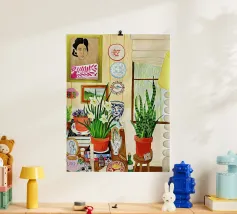 Paloma Villarreal è una pittrice messicano-americana e orgogliosa mamma di gatti. Le sue opere vivaci ritraggono momenti intimi e accoglienti. Qui, il caos domestico amorevolmente organizzato è messo in primo piano, così come le tazze da tè disegnate con calma, i sonnellini, i rituali domestici e le dispense piene di cibo. Il tutto pieno di colori. Paloma vive attualmente a Città del Messico. Insieme al suo compagno e ai suoi gatti, Mr Tumnus e Nissa.