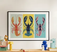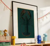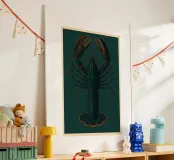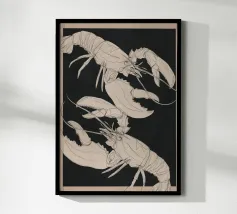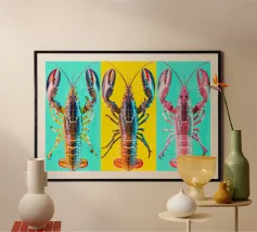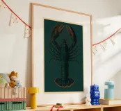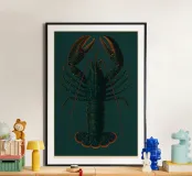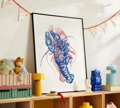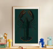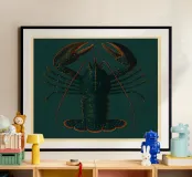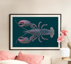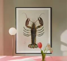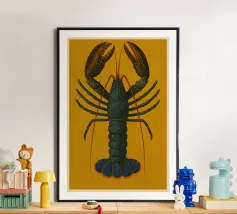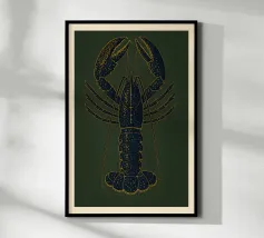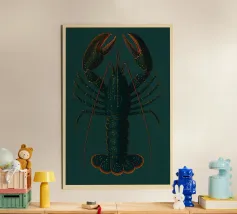 Questa aragosta blu intenso si erge orgogliosa su un verde intenso, con il guscio maculato e le chele in rilievo che conferiscono alla stampa un'atmosfera scientifica e di stile. La texture fine e i colori ricchi conferiscono profondità ed eleganza, rendendola perfetta per cucine, case costiere o pareti di gallerie in cerca di crostacei di spicco con un tocco di tradizione.