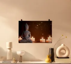 Buddha is a digital work of art, designed with computer graphics. At the centre is a stylised depiction of the Buddha - calm, expressive and harmoniously staged. Clear lines, gentle colour gradients and a balanced composition lend the image spiritual depth and timeless elegance. The digital realisation emphasises the meditative aura of the figure and invites you to pause for a moment. Buddha stands for mindfulness, serenity and the combination of tradition and modern, visual language.