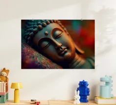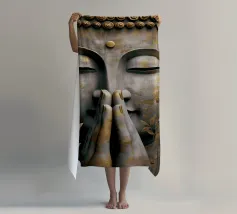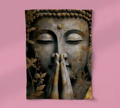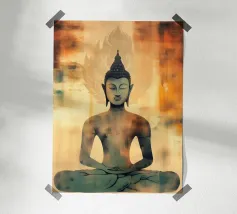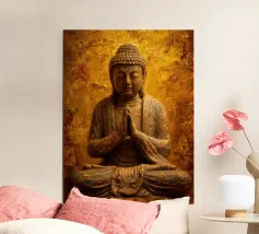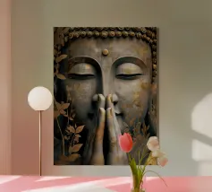 Questo sublime poster mostra una statua di Buddha in posizione di preghiera, circondata da delicati viticci dorati. La rappresentazione fotorealistica con toni caldi dell'oro e freddi dell'argento ricorda l'arte antica dei templi, combinata con una visualizzazione 3D contemporanea. Gli effetti delle intemperie e la morbida patina conferiscono all'opera una profondità spirituale. Perfetto per gli ambienti che devono emanare calma e consapevolezza. Una dichiarazione forte per chiunque apprezzi la saggezza orientale e l'atmosfera meditativa: una spiritualità senza tempo per la casa moderna.