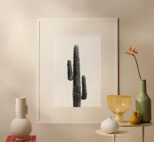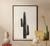 Cactus in bianco e nero 01 poster con telaio in alluminio