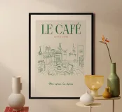 Le Cafe vintage, Retro cafe, french cafe, bakery, typography