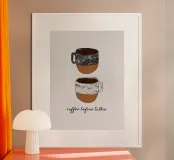 Caffè prima di parlare poster con telaio in legno