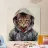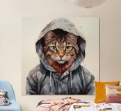 Cartone animato acquerellato Bobcat in felpa con cappuccio poster
