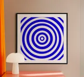 Stampa d'arte moderna di cerchi blu e bianchi.