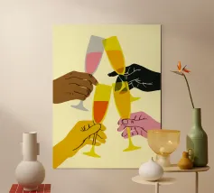 Aggiungi un tocco di eleganza alla tua casa con questa esclusiva stampa "Cheers". Perfetta per cucine e soggiorni, questa opera d'arte incarna momenti di convivialità e festa. Realizzata con materiali di alta qualità, questa stampa incorniciata è l'ideale per ravvivare qualsiasi ambiente.