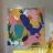 A dynamic and fluid abstract composition is filled with colorful, overlapping shapes that suggest human forms in motion, rendered in a vibrant palette of blue, orange, and pink.