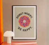 Ciambella con "Donut Worry Be Happy" (Non preoccuparti, sii felice) poster