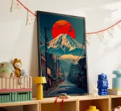 Città retrò del Monte Fuji poster