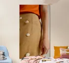 A serene and artistic capture of a soft sage-green fabric adorned with delicate seashells, paired with a graceful hand gesture. This image blends natural beauty with minimalist elegance, creating a coastal-inspired statement piece perfect for modern interiors and fashion-forward art collections.