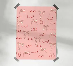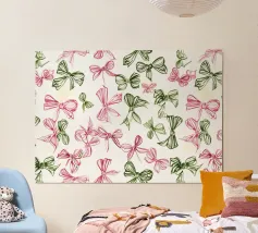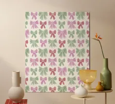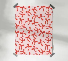 Un motivo giocoso di fiocchi colorati in rosso, rosa, verde acqua, verde lime e pesca, sparsi su un morbido sfondo color pesca con accenti di stelle bianche. Questo disegno allegro e festoso dona un fascino stravagante, perfetto per aggiungere un tocco femminile e gioioso al vostro spazio. Ideale per confezioni regalo, decorazioni ispirate alla moda o per chiunque ami un motivo audace ma delicato. Creato da showmemars