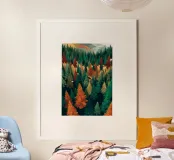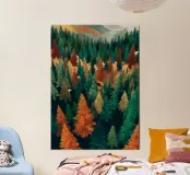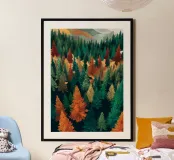 Colorful Pine Tree Wall Art - Fall and Winter Nature Scene poster
