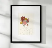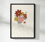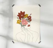 Colorful Thoughts Minimal Line Art Woman with Magnolia poster