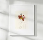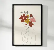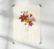 Colorful Thoughts Minimal Line Art Woman with Orchids poster
