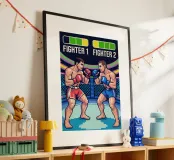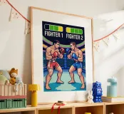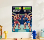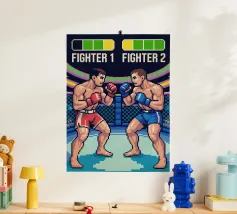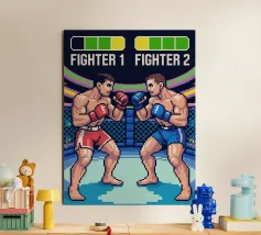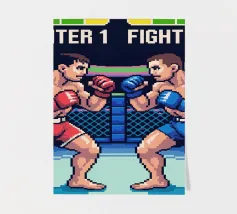 Entrate nella gabbia con questo esplosivo disegno MMA in pixel art! Due lottatori si affrontano in un intenso duello che cattura tutta la tensione e l'energia delle arti marziali miste, in stile videogioco retrò. Perfetto per gli appassionati di MMA, arti marziali e cultura videoludica. Lo stile arcade vintage conferisce un'atmosfera nostalgica, evocando al contempo la potenza, la strategia e l'adrenalina di un vero combattimento nella gabbia delle arti marziali miste. È un'immagine potente per i veri fan dei combattimenti in pixel.