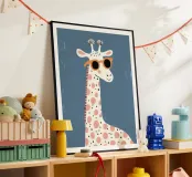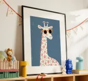 Add a touch of playful personality to your little one’s room with this stylish giraffe illustration. Featuring a tall, gentle giraffe wearing bold orange sunglasses, this print blends safari charm with a fun, modern twist. Perfect for nurseries, kids’ bedrooms, or safari-themed playrooms, this cool giraffe wall art adds height, character, and a pop of colour to any space. A wonderful gift for animal lovers and a charming addition to a modern gallery wall.