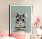 criceto grigio con orecchie rosa, seduto con le zampe unite poster