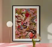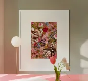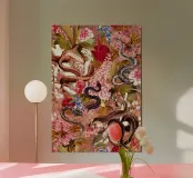 "I motivi e i disegni di Burcu Korkmazyurek si trasferiscono perfettamente dalle radici della moda alle stampe su tela. I suoi realistici motivi floreali e animali si integrano o contrastano con sfondi che vanno dal"