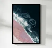 Dark Currents & Pink Sands - Abstract Aerial Ocean Print poster con telaio in plastica