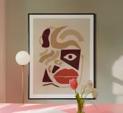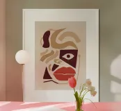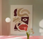 A deconstructed study of a human face is artfully composed of abstract shapes representing an eye, nose, and lips, alongside a hand, creating a sophisticated and conceptual piece.