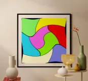 Superfici dai colori vivaci in un movimento rotatorio combinato e leggero poster con telaio in legno