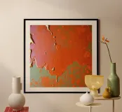 di vernice scrostata che rivela strati di colore su poster con telaio in plastica