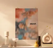 Create a calm and inspiring atmosphere with this minimalist “Dream.” poster. Featuring a soft abstract blur in warm beige, peach and muted blue tones, this modern wall art brings a subtle and elegant touch to any living room, bedroom or home office. The clean typography combined with the dreamy color palette makes it perfect for Scandinavian, contemporary and minimalist interiors. Ideal for adding a peaceful yet motivational statement to your home decor.