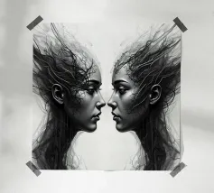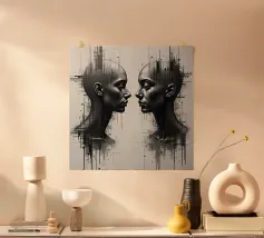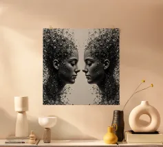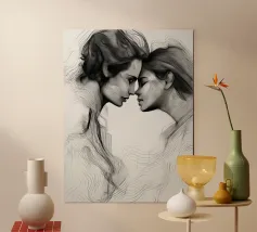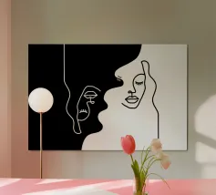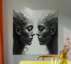 Due eleganti volti di profilo che mostrano un'intricata line art. poster