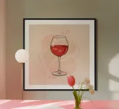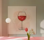 Elegante bicchiere di vino rosso su uno sfondo semplice poster