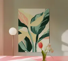 Questa opera d'arte botanica contemporanea presenta foglie sovradimensionate di colore verde smeraldo rese in un raffinato stile minimalista. Le texture espressive del pennello si fondono con morbidi strati traslucidi, creando profondità e un senso di tranquillo movimento. Lo sfondo neutro permette al fogliame di respirare, evocando calma, equilibrio ed eleganza organica. Con la sua estetica pittorica moderna e la tavolozza rilassante, questo pezzo è ideale per interni contemporanei, scandinavi o ispirati alla natura che cercano un senso di quiete e rinnovamento.