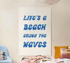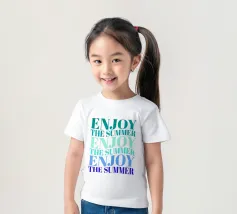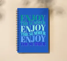 Bellissimo motivo tipografico per le calde giornate estive. Lettere dalla forma estetica e discreta che rappresentano l'affermazione "Enjoy the summer". Colori del mare molto armoniosi. Le vibrazioni della spiaggia si fanno sentire.