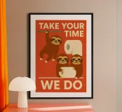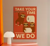 Bradipo prenditi il tuo tempo, noi facciamo il bagno divertente poster con telaio in plastica