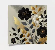 Il colore applicato crea una texture vivace, quasi tangibile, che infonde vita ai fiori. Nonostante le pennellate decise, il dipinto irradia una struttura calma che pone lo spettatore in un dialogo tranquillo con la natura. I colori nero e oro si armonizzano perfettamente e trasmettono una sensazione di pace e innocenza. Quest'opera d'arte è un'ode alla bellezza tranquilla e travolgente della natura, toccante nella sua semplicità e profondità.