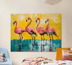 Stampa d'arte a parete di fenicotteri - Decorazioni geometriche tropicali Portate a casa vostra energia vibrante ed eleganza moderna con questa stampa artistica da parete di fenicotteri, che presenta due fenicotteri splendidamente dipinti a mano e reimmaginati attraverso un sorprendente motivo geometrico a rombi. L'opera d'arte originale è stata amorevolmente creata a mano ed è stata trasformata in una stampa di alta qualità, che vi permetterà di godere dei dettagli e della maestria nel vostro spazio. Perfetta per soggiorni, camere da letto, uffici o spazi creativi, questa opera d'arte di ispirazione tropicale combina il fascino giocoso dei fenicotteri con un tocco astratto contemporaneo.