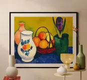 Franz Marc - Brocca bianca con fiori e frutta poster con telaio in plastica