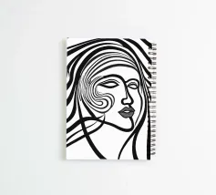 Black and white female face made of lines and patterns. Generated with AI (Canva).