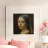 Giovane donna con il foulard con espressione dolce e sguardo calmo poster con telaio in legno