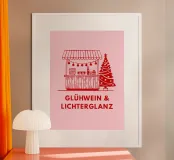 Un tocco di inverno, un sorso di felicità: questo poster cattura il periodo più bello dell'anno. Il rosso caldo incontra il rosa tenue, il profumo del vin brulé riempie l'aria e le luci scintillanti evocano un'atmosfera accogliente in qualsiasi stanza. Perfetto per chi ama la magia delle serate invernali.