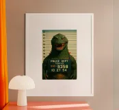 Godzilla Mugshot Divertente Godzilla Monster Art Design poster con telaio in plastica