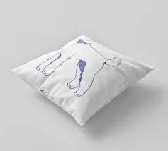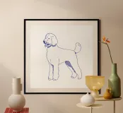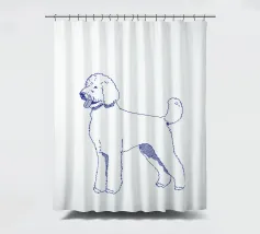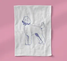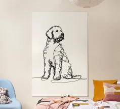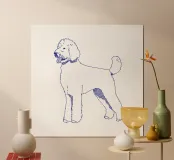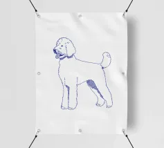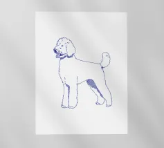 Blue line drawing of a Goldendoodle. The dog motif is best suited to very light backgrounds.