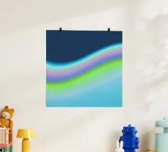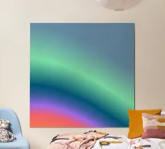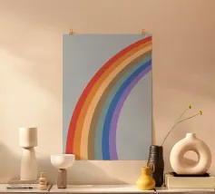 Questa delicata illustrazione mostra un arcobaleno in colori pastello con morbide sfumature di colore dall'azzurro al rosa, al giallo pastello e al verde chiaro. Le linee geometriche e le strisce strutturate danno un tocco moderno all'opera grafica e riflettono la natura. Un gioco armonioso di colori che irradia calma e gioia.