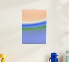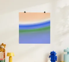 Questa delicata illustrazione mostra un arcobaleno in colori pastello con morbide sfumature di colore dall'azzurro al rosa, al giallo pastello e al verde chiaro. Le linee geometriche e le strisce strutturate danno un tocco moderno all'opera grafica e riflettono la natura. Un gioco armonioso di colori che irradia calma e gioia.