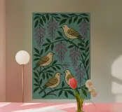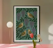 Grape Birds poster con telaio in legno
