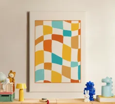 Con questa stampa d'arte astratta, che conferisce al vostro spazio un'atmosfera divertente e vintage, il disegno è caratterizzato da un dinamico motivo a scacchiera ondulato con bordi curvi, che crea un effetto ottico ipnotico. Il disegno presenta un dinamico motivo a scacchiera ondulata con bordi curvi, che crea un effetto ottico ipnotico. La tavolozza calda e vibrante comprende il giallo solare, l'arancione terracotta, l'azzurro e il bianco crema, il tutto sovrapposto a una sottile texture consumata per un'autentica estetica anni Settanta. Questo pezzo è perfetto per aggiungere un tocco di massimalismo retrò o di fascino bohémien a qualsiasi stanza. Disponibile come file di arte digitale di qualità superiore (7000x5000 pixel, 300 dpi), garantisce un'eccezionale fedeltà dei colori e un'ottima resa.