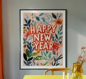 Happy New Year (Version 2) poster con telaio in legno