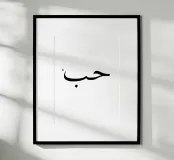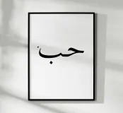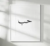 حب love in Arabic. Typography in black and (transparent) white. You can change the background color. Minimalistic typography poster.