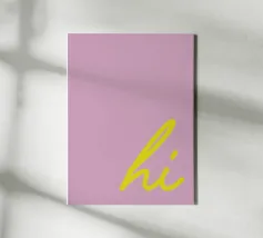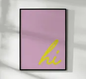 Scopri la nostra stampa artistica in cornice con design moderno "hi". Perfetta per arredare il tuo soggiorno o la tua camera da letto, questo pezzo aggiunge un tocco di vivacità e colore alla tua casa. Realizzata con materiali di alta qualità, è un'aggiunta ideale per ogni ambiente.